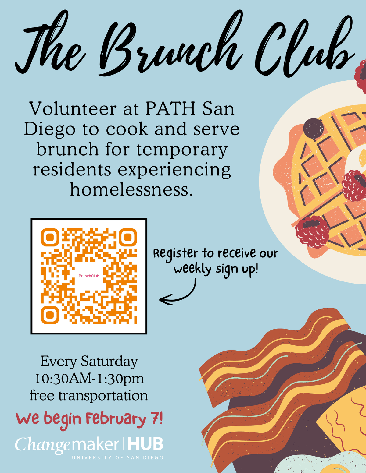Join us weekly to serve Brunch to their temporary residents from 9:30am-12:30pm. Transporation provided. Sign up to receive an email notification for our weekly sign-up form.